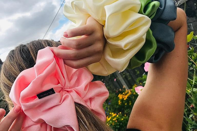 We offer a variety of statement scrunchies in various colors and fabrics for all occasions.