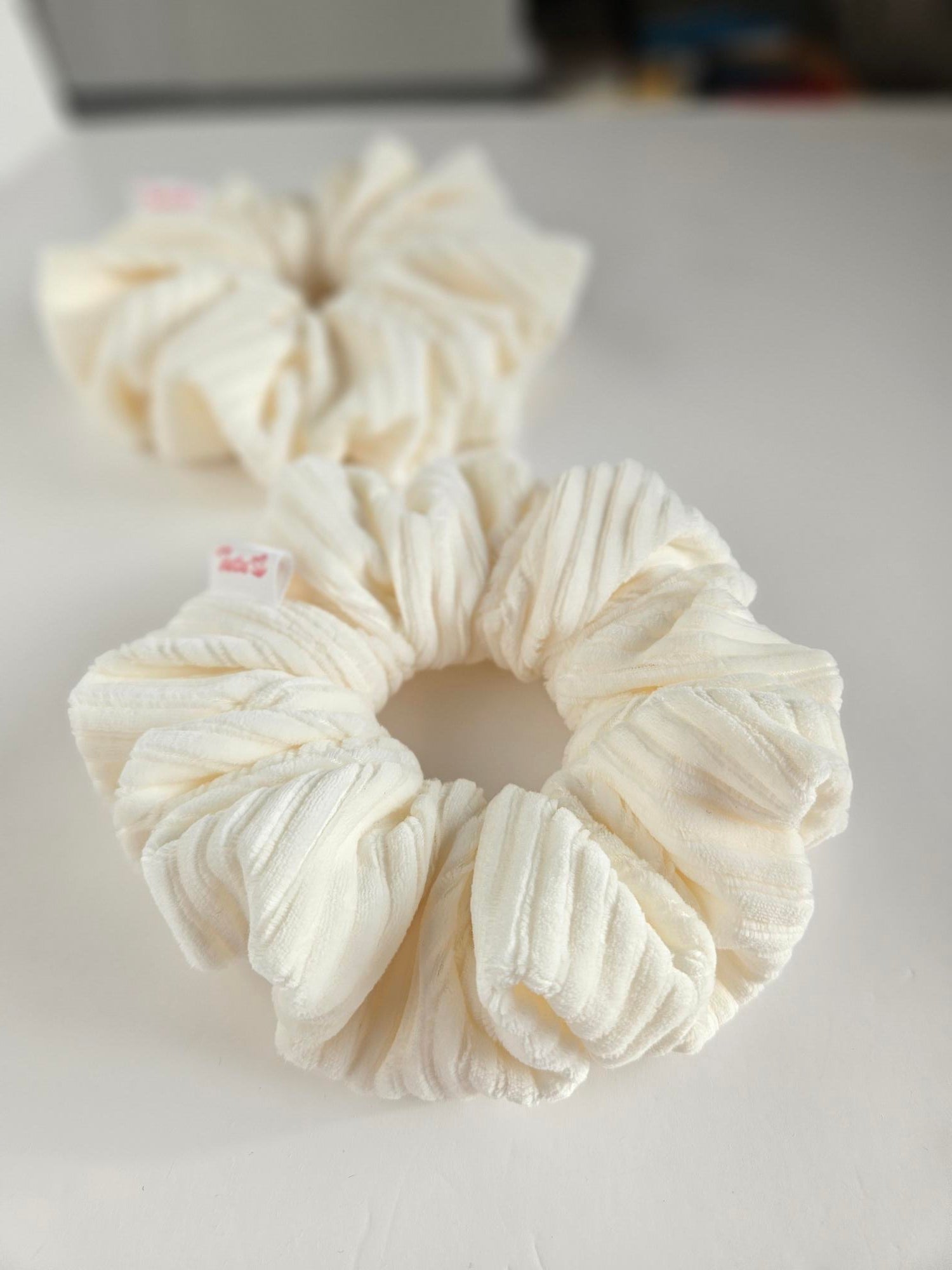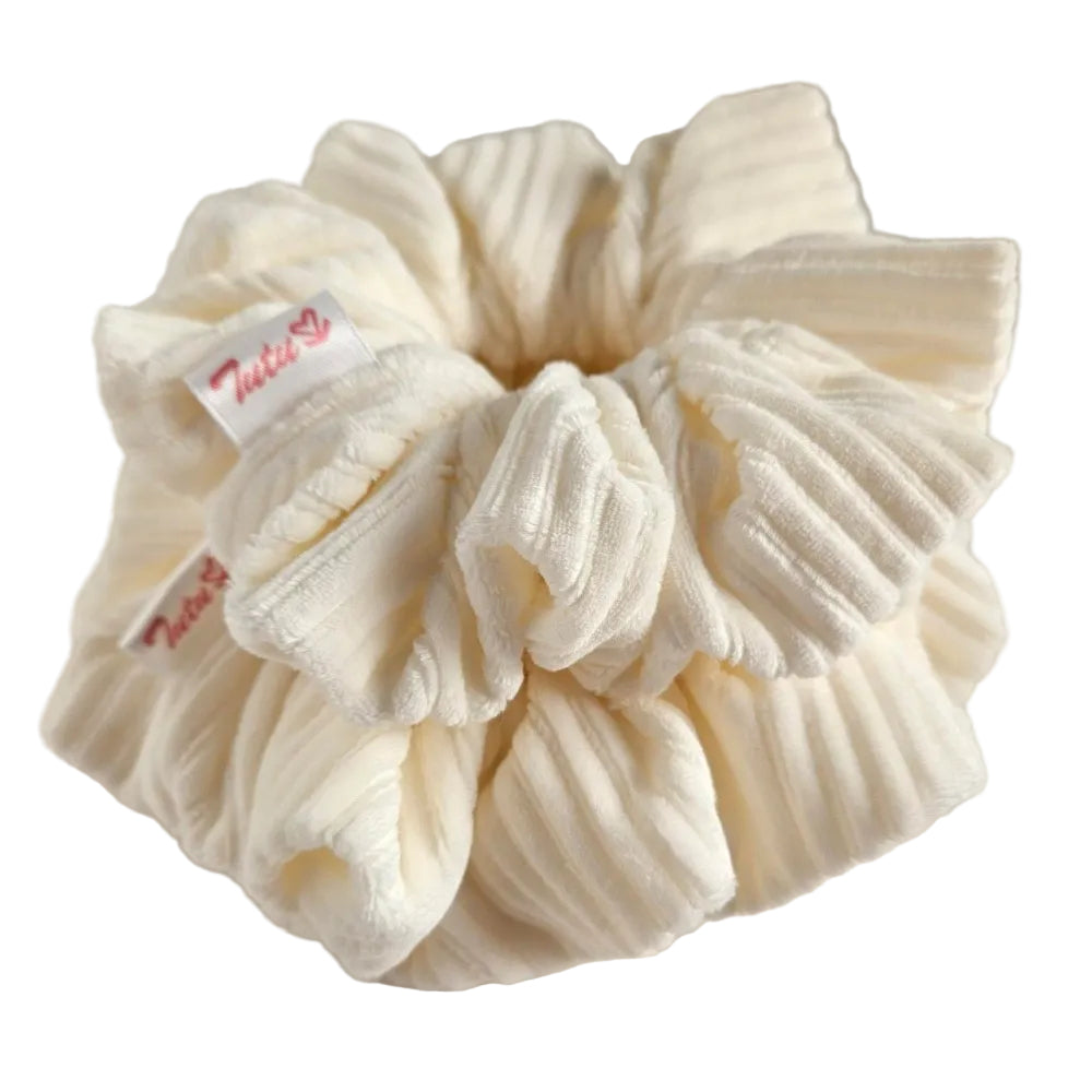 Our corduroy scrunchies are available in both XXL and medium sizes.