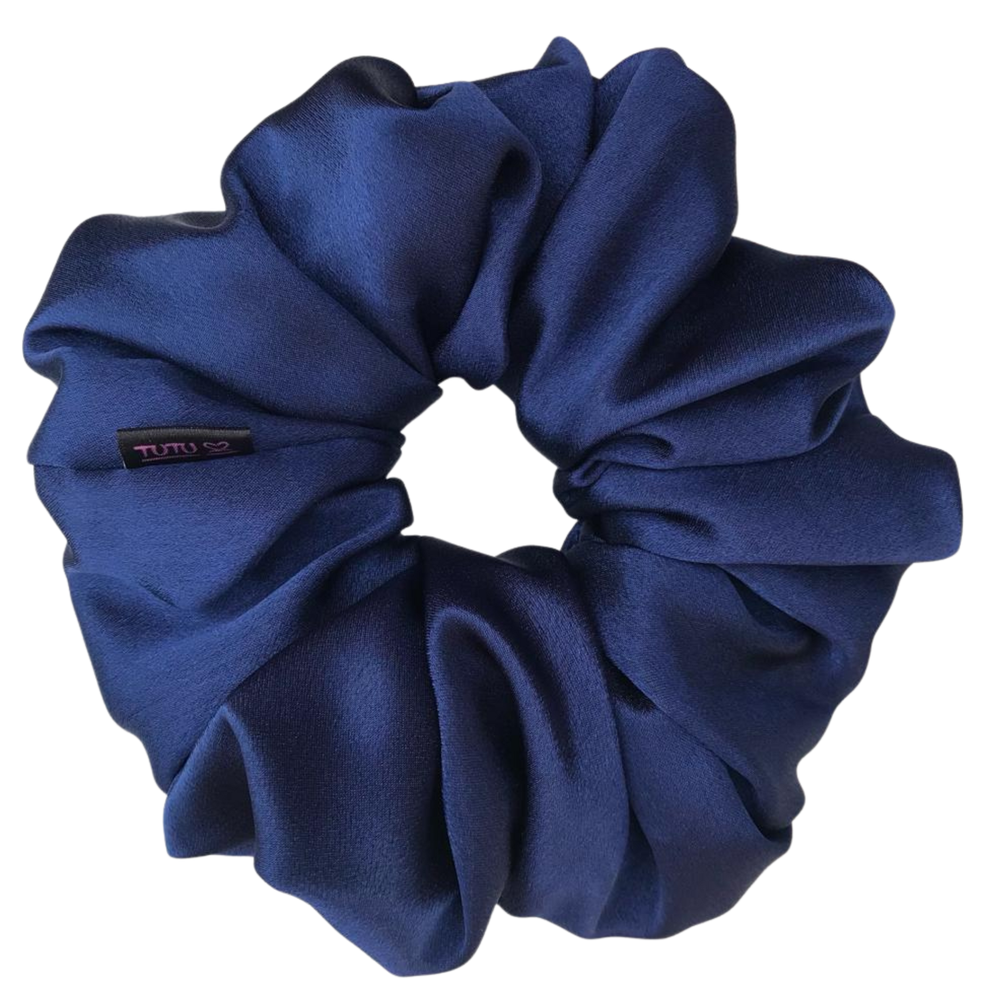 Meet - HANNAH our beautiful navy blue satin scrunchie. Navy blue symbolises professionalism, authority, stability, and trust. Wisdom and sophistication abound with Hannah.